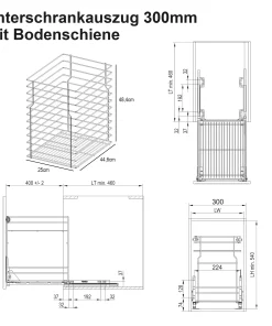 Technische Daten Schrankauszug 30 cm 1-etagig