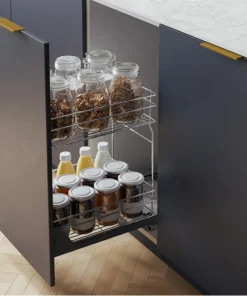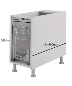 Der Unterschrankauszug 60 cm nutzt schmale Nischen optimal: 2 Etagen, Vollauszug und gedämpftes Schließen. Verchromter Drahtkorb, passgenau ab 56,4 cm Innenbreite.
