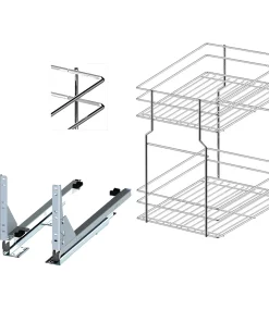 Schrankauszug 600 Soft-Close – 2 Etagen, Chrom, Bodenmontage (Bodenschienen)