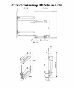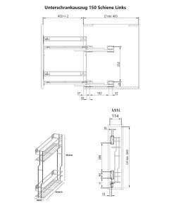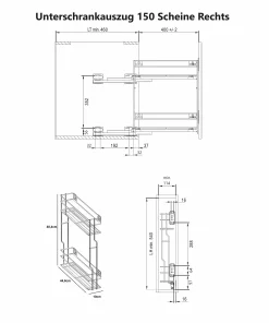 Unterschrankauszug Küche 2 Ebenen Anthrazit – 150/200/250 mm, Soft-Close, Links/Rechts