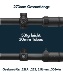 30mm Tubus: Robuste Bauweise, kompatibel mit Standardmontagen.