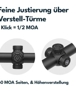 ➤ Verstellung bis zu 60 MOA mit 1/2 MOA pro Klick