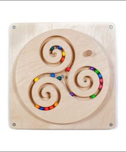 Das Wandspiel Kugelwirbel vereint spielerisches Lernen mit hochwertigem Design und fördert die kindliche Entwicklung auf mehreren Ebenen. Die farbenfrohen Holzkugeln wirbeln in einer geschlossenen Drehscheibe durcheinander und laden zum Entdecken, Zählen, Beobachten und Nachverfolgen ein.