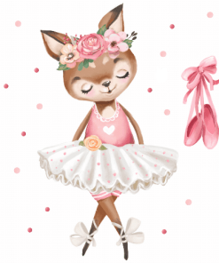Wandsticker Bambi der entzückendste Aufkleber eines Ballerina Bambi ist eine Dekoration, die das Zimmer Ihres Kindes hervorhebt. Der modischste Aquarellstil (Aquarell) Diese Größe des Aufklebers passt perfekt über ein Kinderbett, einen Schrank oder in eine Spielecke. Aufkleber auf den Umriss geschnitten, kein Hintergrund.