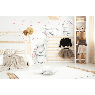 Wandsticker Liya Ein wunderschönes Thema für ein Kinderzimmer. Es sieht an jeder Wand wunderschön aus. Pastellfarben, süße Hasen passen perfekt zu den Farben jedes Zimmers. Der Druck wird mit der für Kinder sicheren Öko-Lösungsmittel-Methode hergestellt. Der Aufkleber ist entlang des Umrisses geschnitten, ohne Hintergrund. .