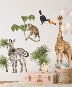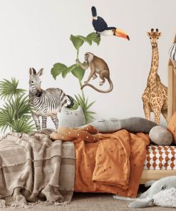 Die Sammlung von Safari-Wandstickern bietet atemberaubende afrikanische Landschaften voller wilder Tiere und exotischer Vegetation. All dies macht die gesamte Kollektion realistisch und verwandelt ein Kinderzimmer in eine erstaunliche Welt voller Abenteuer in endlosen Steppen. Die gesamte Serie wurde so konzipiert, dass sie perfekt miteinander harmoniert und eine stimmige Komposition ergibt.
