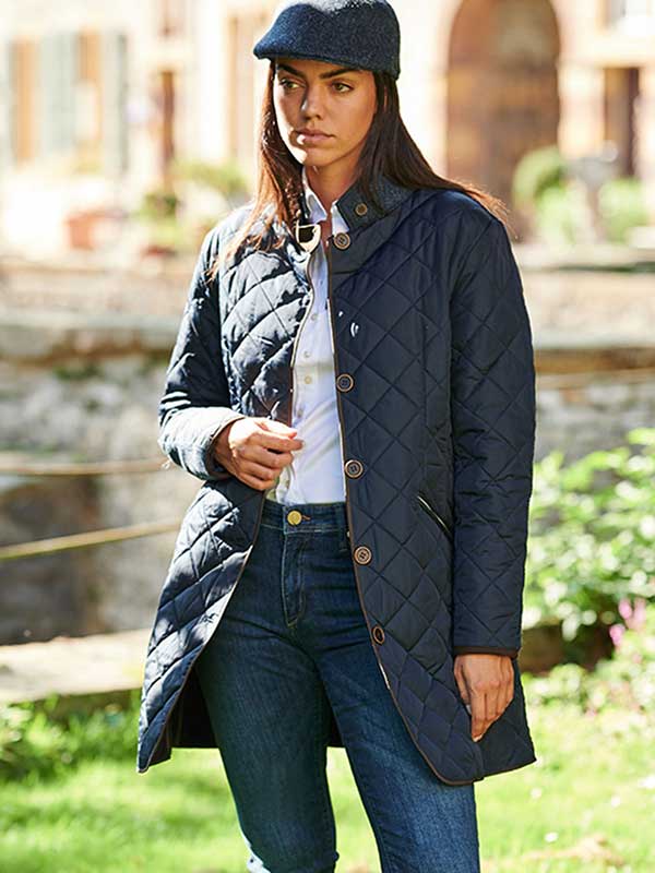 Wellington, Steppmantel ”Gabby” mit Harris Tweed Besatz in navy