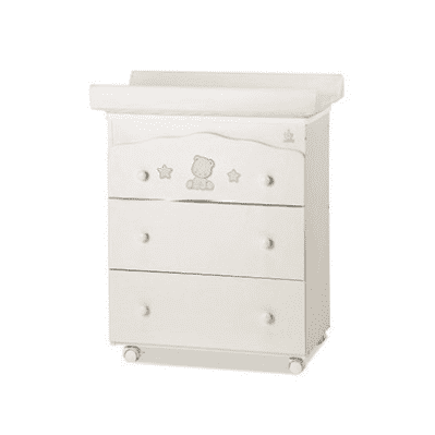 Wickeltisch Stella bietet Viel Platz und Stauraum fürs Kinderzimmer mit grossen Schubladen für Kleidung und Spielsachen. Mit der kindgerechten und einzigartigen Gestaltung passt sie perfekt ins Kinderzimmer.